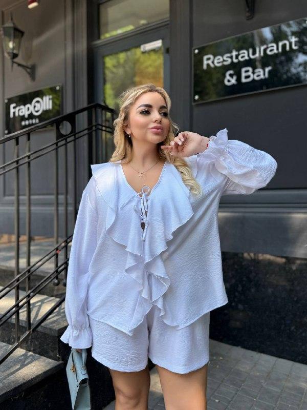 Жіночий костюм із шортами; Колір білий, чорний і рожевий; Розміри: S, L, 2XL;