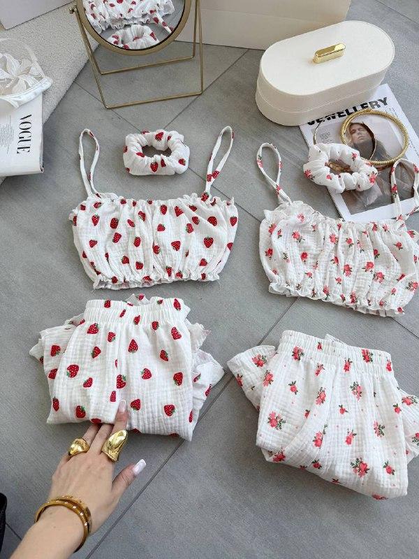 🔝Коли хочеться бути красивою і вдома - обирайте нашу піжамку з натуральної тканини, дуже комфортна і приємна до тіла, шортики вільного крою і топ, в комплекті йде резинка для волосся 🫶🏻